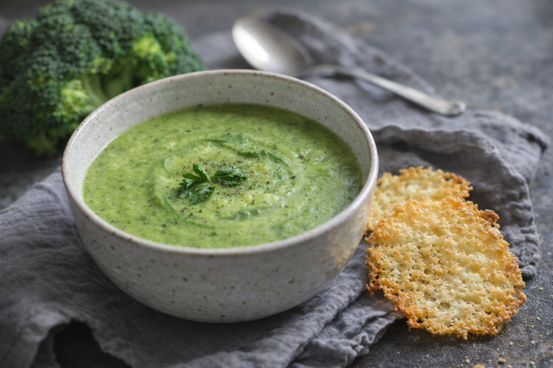 🍲🥦 Cremige Brokkolisuppe mit knusprigem Parmesan-Cracker