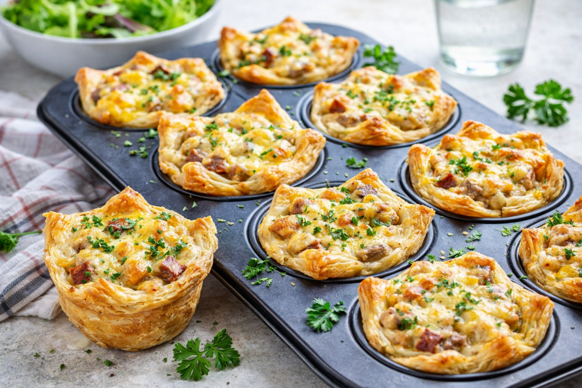 Diese deftigen Alpentörtchen aus Blätterteig sind außen herrlich knusprig und innen wunderbar saftig. Kasseler, Zwiebeln, eine würzige Eiermilch und geschmolzener Emmentaler machen sie zu einem unkomplizierten Ofengericht, das sich ideal vorbereiten lässt. Perfekt für Partys, Brunch oder ein schnelles warmes Abendessen.