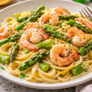 🍋🍝Spargel mit Garnelen – cremige Pasta mit Weißwein & Zitrone