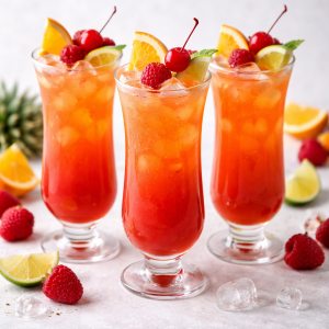 Anstatt dem Johannisbeersaft kann auch Kirschsaft verwendet werden. Dann ist der Cocktail weniger herb.