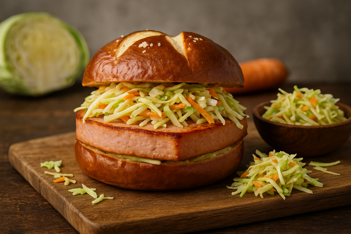 🥨 Fleischkäse-Burger mit frischem Krautsalat