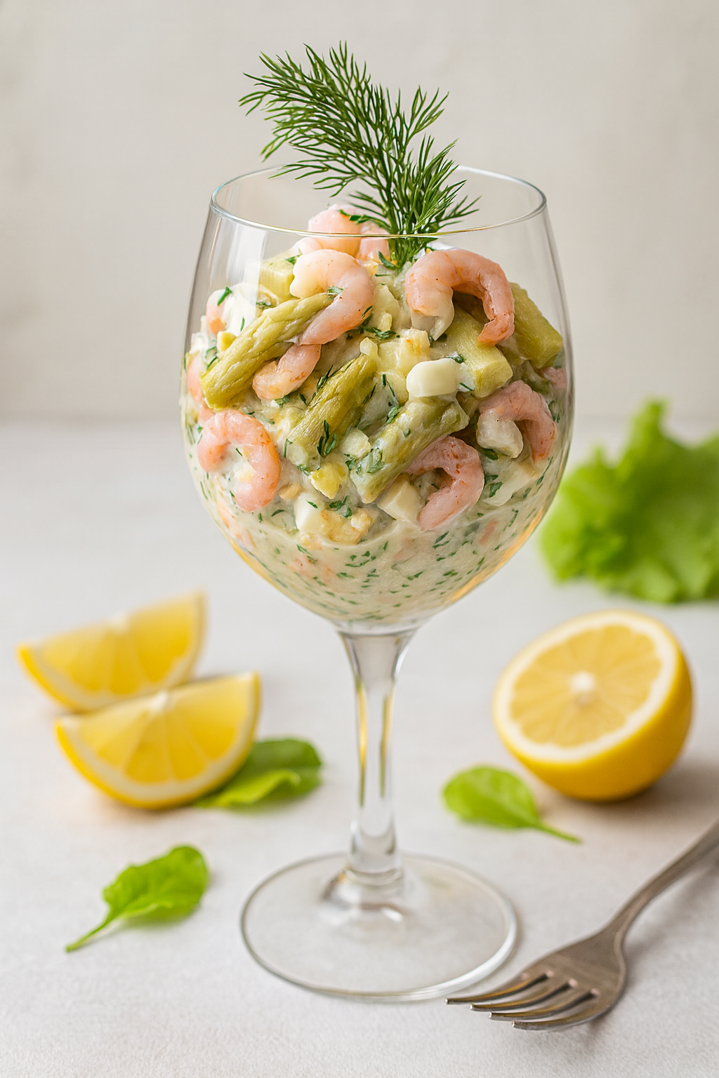 Krabben und Spargelspitzen vorsichtig unter die Dill-Mayonnaise heben. Die Mischung einige Minuten durchziehen lassen, damit sich die Aromen verbinden.