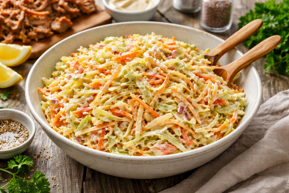 Dieser cremige Spitzkohlsalat ist ein unkompliziertes, vielseitiges Beilagen-Rezept, das perfekt zu herzhaften Gerichten passt. Schnell gemacht, gut vorzubereiten und immer ein Highlight auf dem Teller – ideal für Grillabende, Familienessen oder Buffets.